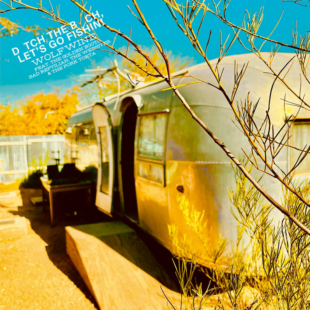 Stéphane Louvain (The Little Rabbits, French Cowboy, Katerine, I’D Prefer Not To….) a passé 3 mois à Tuscon, Arizona, à travailler en studio avec les Golden Boots, ainsi que d’autres groupes locaux comme Sad Reptilian, The Websites ou The Pork Torta, pour enregistrer son premier album solo avec Jim Waters aux manettes. Tout ça nous donne Wolfwine, et ce D TCH THE B CH, LET’S GO FISHIN! aux airs de fourre-tout bien digne du gaillard. On aimera pour débuter J’aime pas, folk-pop d’éclat sur textes asociaux, légèrement orchestral et de chants alliés en masculin/féminin. Lo-fi, aussi, noisy et peaufiné. Tout ça à la fois. L’idéal, en tous les cas, pour plaire à l’écoutant. Pour toujours, plus posé, suivant en laissant là son climatique distingué. Sweetest curse, au troisième rang, couplant lui country et allant agréable. Eclectique, le disque délivre même une électro vive avec L’Ambulance, free et strié, stylé aussi. Il en va de même pour Les Oiseaux, ambient et fantomatique. Les paysages se succèdent, tous éloquents, au gré des mouvances parcourues. Apocalyptic Quest (feat. The Websites) emprunte de son côté la voie rock, psyché, mélodique et…terminé car le titre est bref.