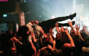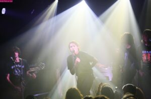 Hardcore furieux, propos anti-tout ce qui part en c+++++++, énergie viscérale et compositions, dans le genre, plus qu’élevées. Split dévaste, soucieux de la réaction de la Lune le leader n’a plus à s’en faire. Même l’ami disquaire Tom Taup’s, habitué à débouler tard, est pour le coup venu bien tôt. L’étendue est de plus audible, Split flirtant avec l’indus, la noise et le dégoût total d’une société qui le révulse. Split n’est pas figé, son ire est assez plurielle pour mainteneur l’intérêt. Violent, il en met plus d’un(e) sur le flanc. Il finit suant, son implication est débordante. On tente de s’en remettre, sonné. Coilguns se prépare, là aussi ça sent l’assaut débridé. Après une série de sincères poignées de mains, Louis Jucker débute les contorsions et la noise matinée de post-hardcore des Helvètes esthètes commence à faire trembler les murs. Quelques notes dépaysantes s’incrustent, la rage tantôt se module et s’il faut le suivre dans ses méandres, il va sans dire que Coilguns impressionne. Ses convulsions frappent fort, ses geysers instrumentaux font sensation et de tout ça transparait une forme d’ « Amour Etrange » qui rassénère son monde. Le sieur Jucker fend la foule, slamme, monté sur les ressorts de nos tristes sorts. Il n’empêche, la raclée vécue en allège le poids.
