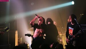 Coilguns je connais bien, chroniqué ici et interviewé par là le groupe Suisse m’est familier. Même Sentence pour Split, review en ces lignes et mailer ici-même. Alors cette date, la rater pensez-vous…et c’est une fois de plus avec le sourire que le ticket d’entrée m’est refilé, c’est je l’avoue un plaisir. La Lune affiche complet, elle va très vite se faire renverser. Split investit la scène, Marvin Borges-Soares remonté comme jamais y déposant sa rage à l’unisson avec ses collègues qui sans faillir ferraillent. Avec le pote psy à ma gauche, avec la salle toute entière d’ailleurs, on se prend Split en pleine gamelle et c’est bien peu de le dire. Les gaillards jouent gras, compact, et dans une intensité de taille.