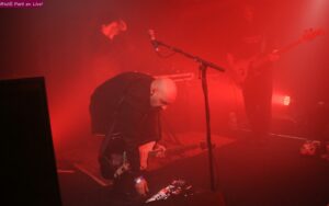 Dedious, cette fois-ci j’irai pas par quat-chemins. Shallow Waves, trio de Toronto, est venu par chez nous claquer un zbeul strident. On l’a pris dans les dents. Après l’ouverture assurée par Plaisir de Recevoir, oups pardon d’Offrir, dont j’ai miré en tout et pour tout 10 minutes, sans tarder les gaillards de l’Ontario nous ont cloué le bec. Basse, guitare-perceuse et clavier déjanté, voix hantée, registre quelque part entre la noise, l’indus, fond cold et élans technoïdes. Un hybride sauvage, en rage, en marge. Eprouvant, mais aussi captivant. Des lights en strob’, j’y vois plus rien mais j’entends tout. L’acolyte du 1001 Bières, à côté, qui me souhaite bonne chance pour les photos. Merci guy, j’ai fait comme je pouvais. Bon, y’a du APTBS dans ce que trucide Shallow Waves.